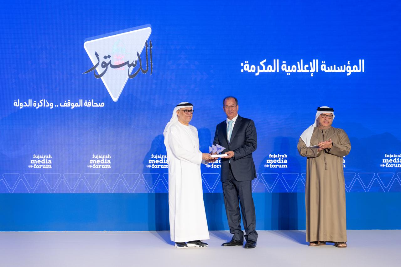 كما شهد الملتقى تكريم صحيفة الخليج وجريدة الدستور الأردنية، إلى جانب لفتة تقديرية خاصة بتكريم الإعلامي عبدالله نويس والإعلامي أحمد الشيخ، تقديرًا لإسهاماتهما الإعلامية ومسيرتهما المهنية.